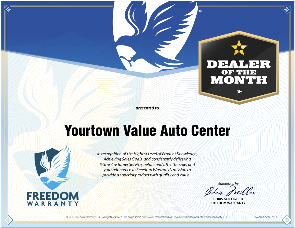 - Dealer of the Month is limited to one award per territory, per month.