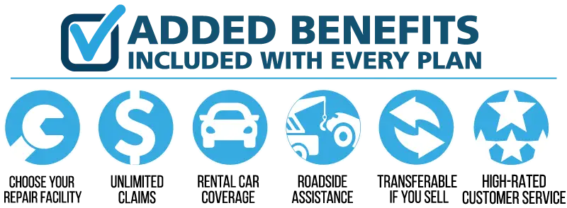 Every car service and maintenance plan includes added-extra benefits and services that other plans may not offer, including Rental Car Coverage, Roadside Assistance, a 24-hour Toll-Free Nationwide Helpline, Unlimited Claims, the right to Choose your Repair Facility, and the ability to Transfer any Remaining Coverage on your contract with the sale of your vehicle.